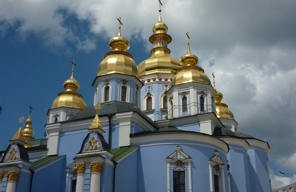 On my first night it pelted noisily with rain and I was woken by baying dogs, possibly the pack I’d seen the evening before, nestled round a homeless woman with a collection of over-stuffed plastic bags. The morning dawned fresh and clean and from the pretty balcony of my rented apartment in the district of Podil, in Ukraine’s capital, I could see the lumbering trams creak into action at the station opposite. I could also see the beautiful domes of St Andrew’s church pushing up through the city skyline like onions through soil.