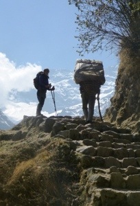 The trail from Lukla airport to Everest Base Camp climbs from an altitude of 2840m to a head-spinning, lung-grasping 5364m. Yet this is no wilderness trek. The route is flecked with hikers kitted out in expensive outdoor gear; porters bent under impossible loads; fleets of furry yaks ferrying local supplies and trekkers’ kit up and down the hills; and local Nepalese going about their business. This might be the Himalayas, but the Khumbu region of eastern Nepal is home to over 150,000 Sherpas and the bustle of daily life is much in evidence. As well as the local colour there is plenty of camaraderie among the walkers, as we wish each other luck and enquire anxiously about conditions higher up. We meet other Xtreme Everest groups coming back down from Base Camp, a group of doctors and a group of Sherpas participating in the same medical research as us. They tell us that night-time temperatures are as low as -20 degrees Celsius. My bone marrow shivers at the thought.