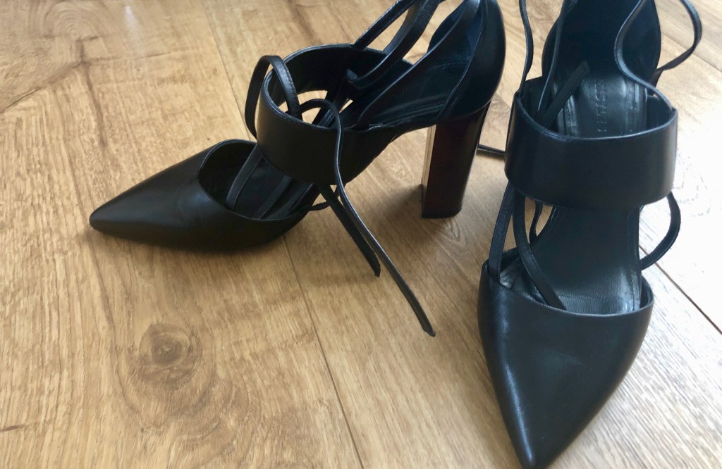 These shoes are definitely not made for walking! Tonight is date night and we are going out for dinner at a fancy Indian restaurant, so this evening I will be tottering along in these high heeled black little numbers with ankle straps. Good job we’re getting a cab …